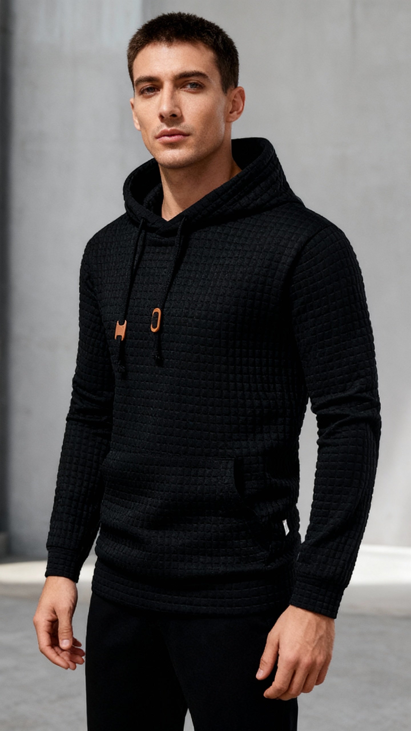 Cozy Polyester Hoodie - Textured Waffle Pattern